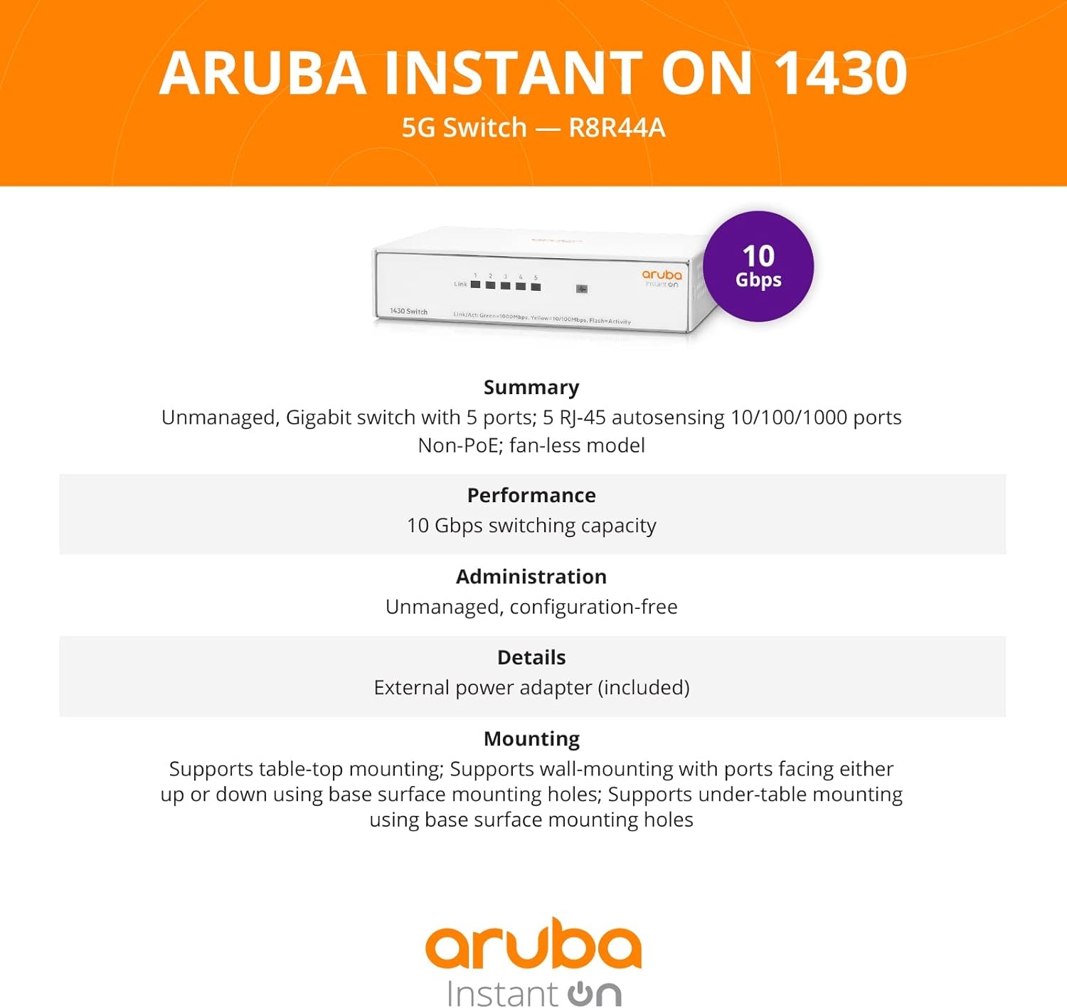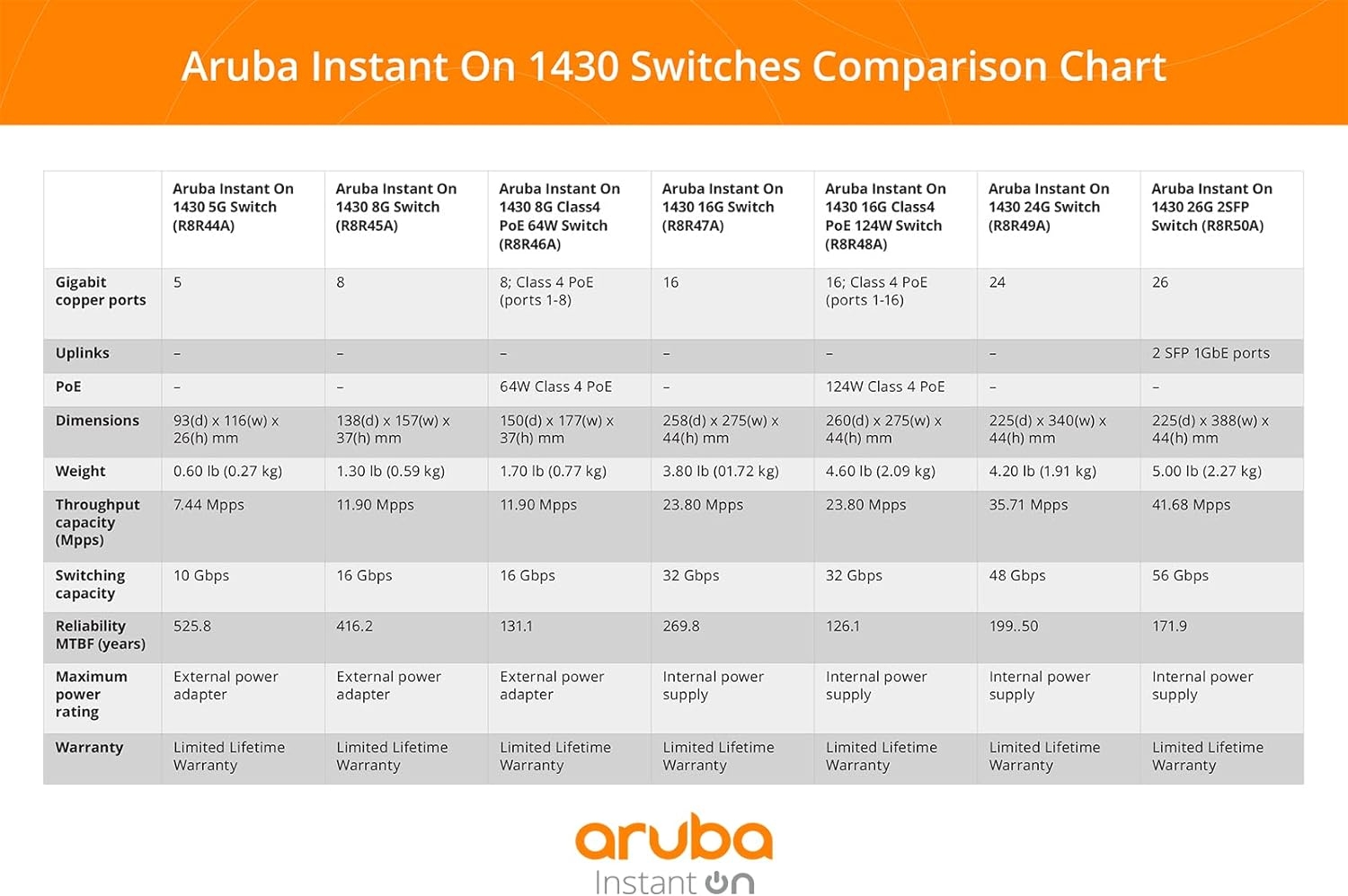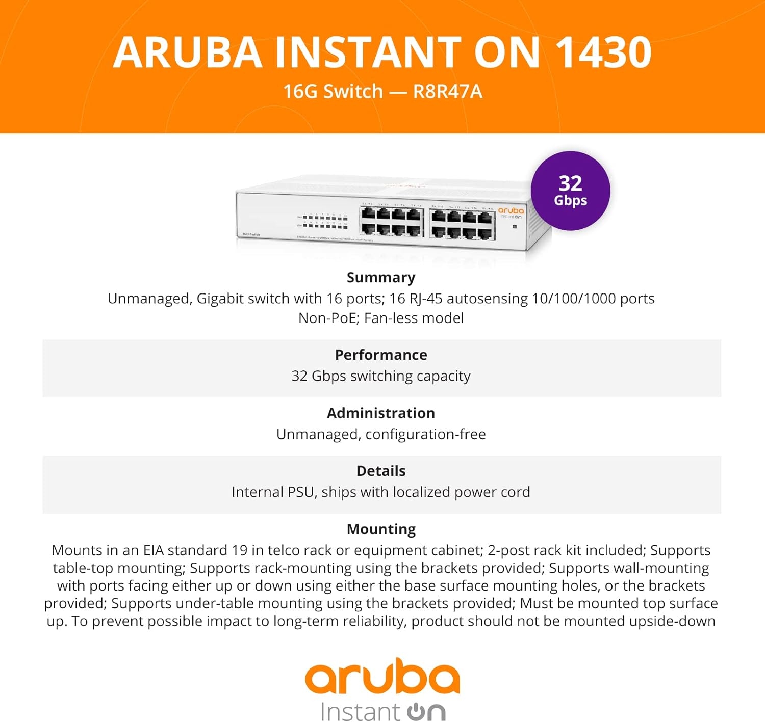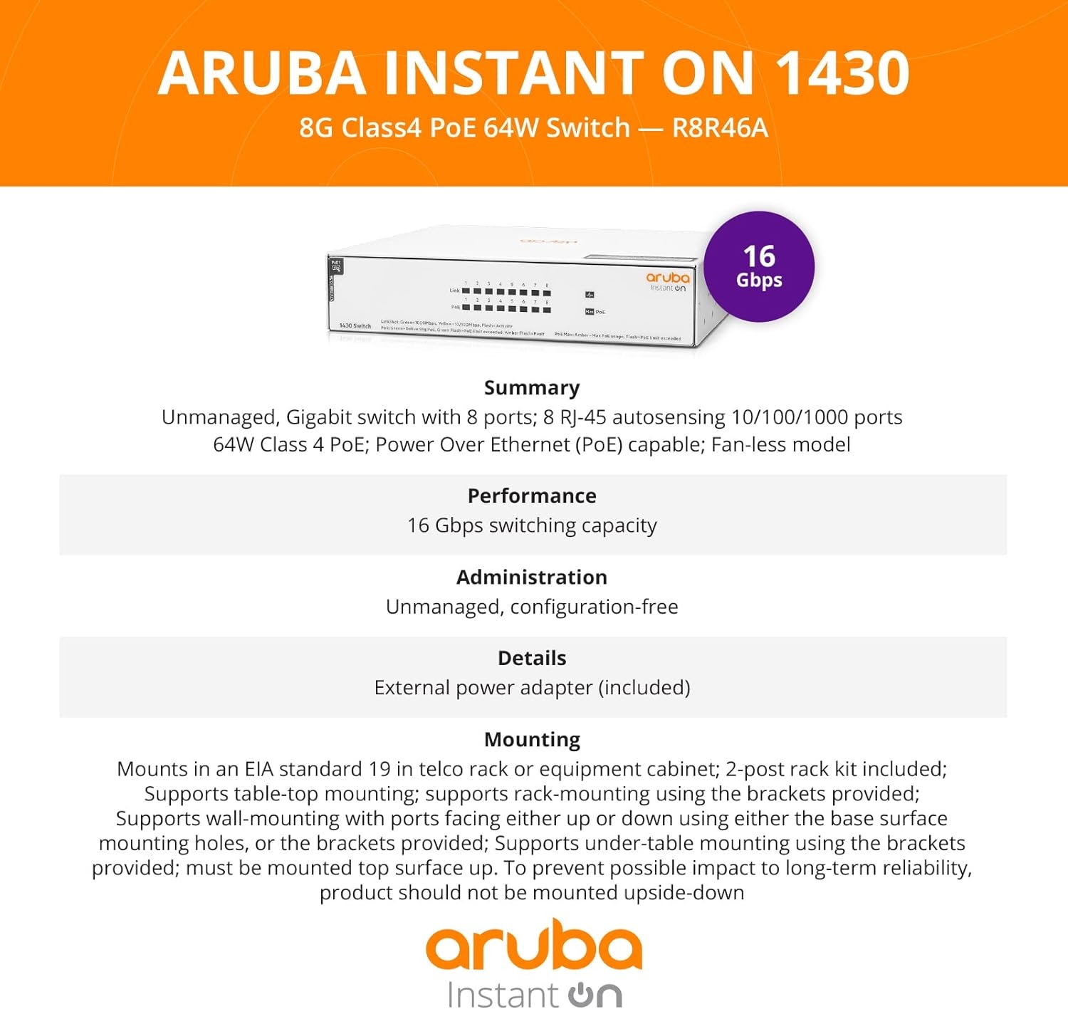 | Model | 16G, 5G, 8G, 8G | PoE 64W, R8R48A#ABA |