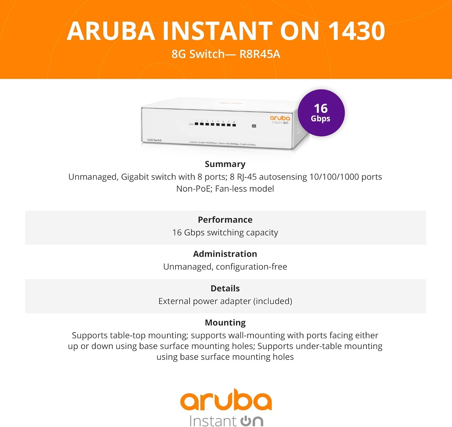 Aruba Instant On 1430 16-Port Gb (R8R48A)